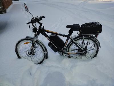 Около 30см за ночь насыпало, вспотел пока доехал, еще сумка тяжелая багажником виляла  :-)