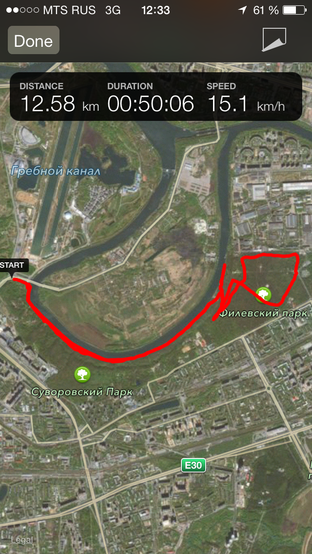 Средняя скорость по sportstracker 15.1 кмч, макс. 22.9