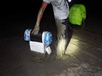Конечно, по автовскому путепроводу на плохом асфальте подниматься не ах. Колесо приезжает с одной лампочкой... На второй день поехал по трамвайному мосту. Вот что получилось: