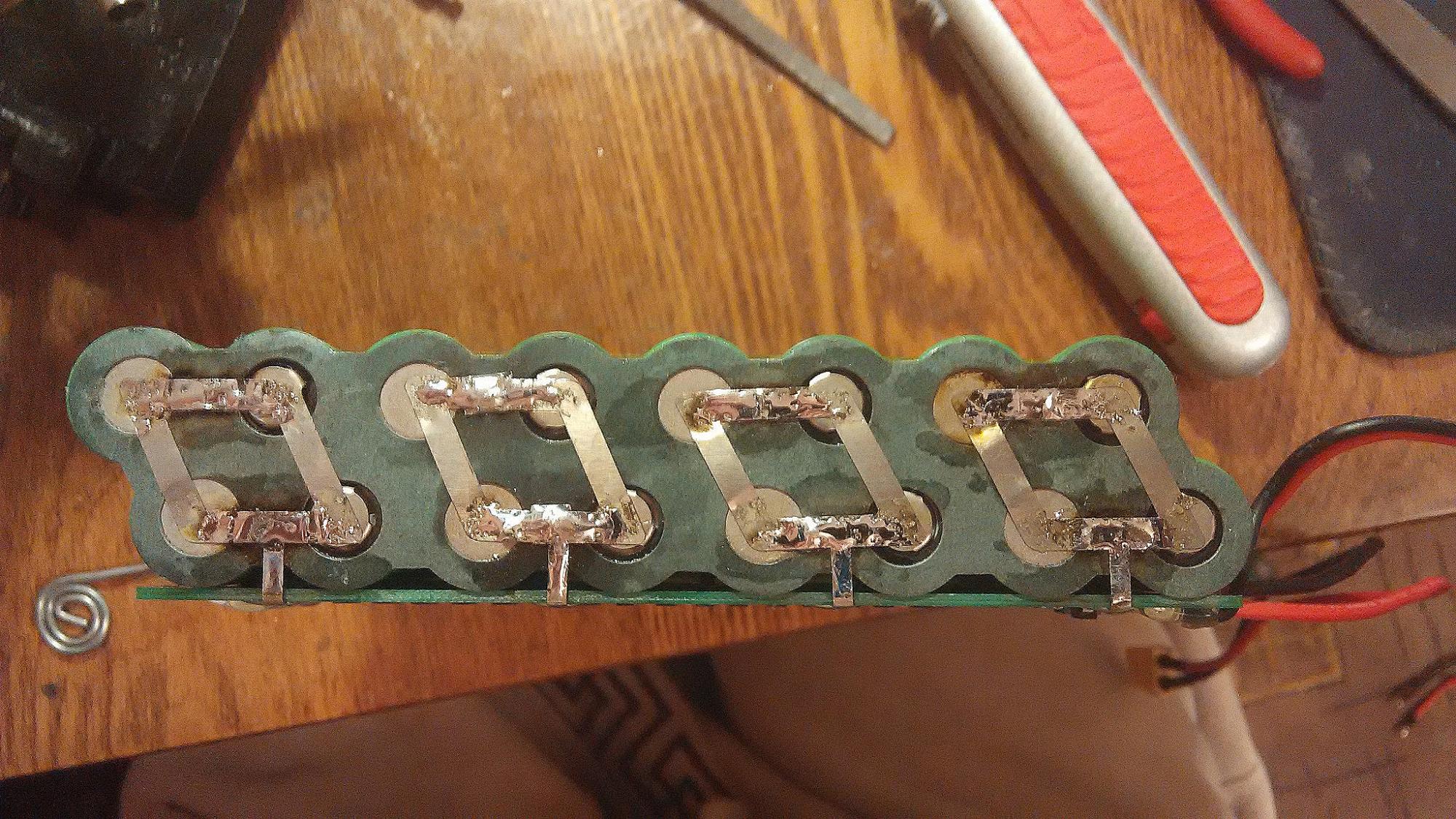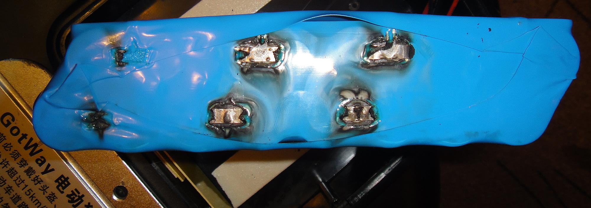 Для себя сделал вывод, что PCB как-то херовенько защищает ячейки, если отгорели перемычки, а не плата защиты отрубила батарею при к.з.