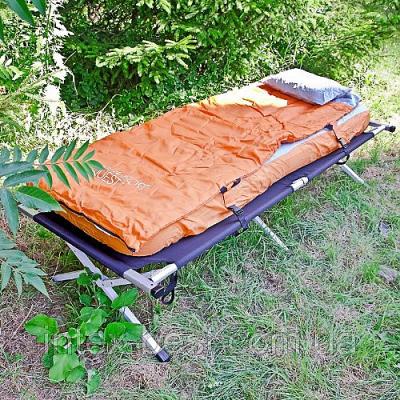 Тут не простая а кемпинговая раскладушка имеется в виду, она создана специально для этого и имеет покрытие из пенки и не забирает тепло, при этом очень удобная спал в -15 в палатке.