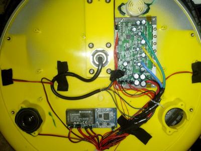 Разбирается колесо просто, т.к. корпус состоит из двух половинок 4 части. С одной стороны батарейки, с другой мозги.