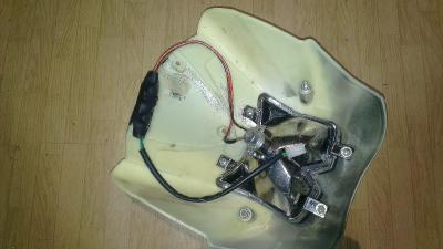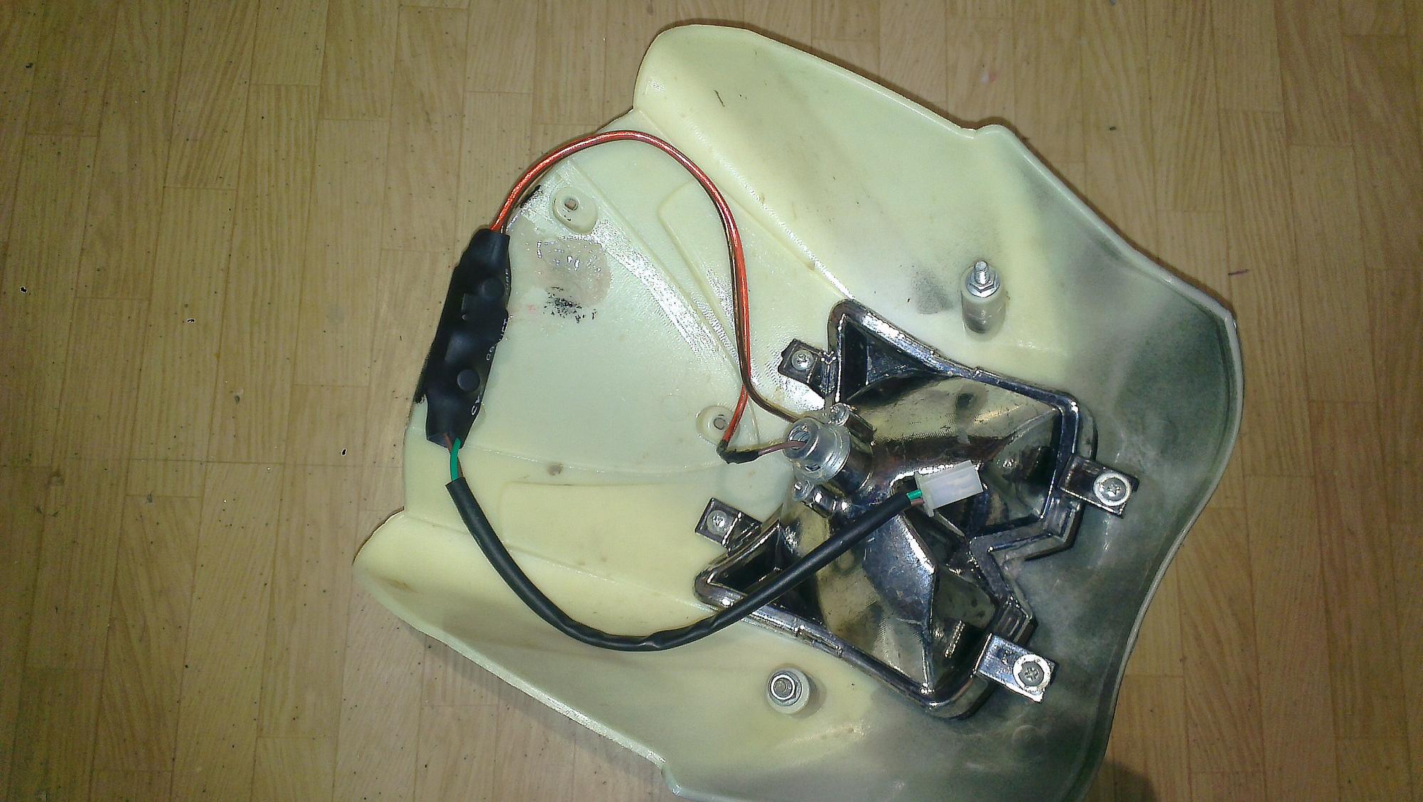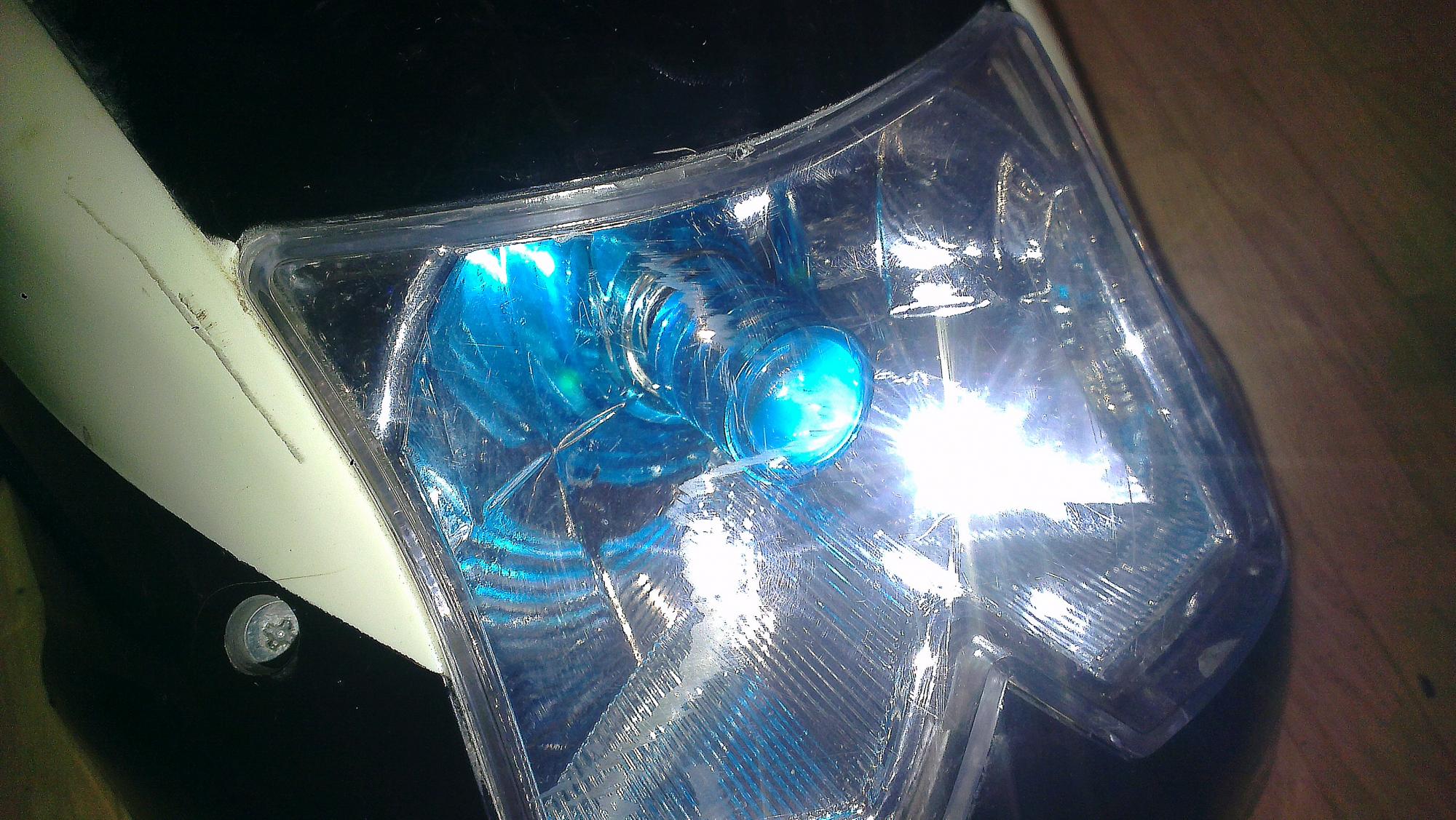 Да, я тоже убрал лампы накаливания :facepalm: Поставил отражатели и диоды от китайских фонарей, хз какой мощности но светят приемлимо. Стабилизатор/трансформатор не стал искать, попробовал запитать от проводов, которые идут на светодиоды-индикаторы зарядки. После тестов отказался от таккой запитки, так как что-то в контроллере начало пищать :ah: Очканул и запитал последовательно от простой 9вольтовой батарейки "Крона". :eureka: Также сделал задний красный габарит, фото пока нет.