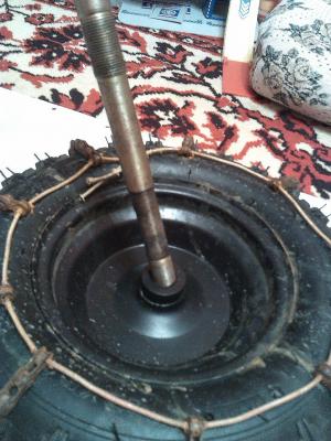 В общем на квадрике задняя вращающаяся неразрезная ось. И если зимой  - это очень круто, то летом на асфальте будет лажа! Сейчас я сажаю одно колесо на подшипники, а на второе колесо будет привод. Но очень хотелось бы реализовать механическую блокировку колеса (того, что будет с подшипниками). Желательно через тросик, чтобы можно было оперативно подключать/отключать второе колесо.