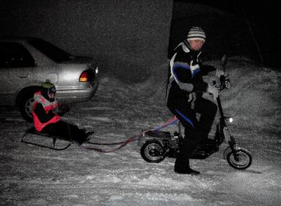 Летом самокатик меня хорошо выручал по делу. А зимой продолжает быть для меня отдушиной. Жена ревнует, сын доволен когда катаю его. Сегодня и местную детвору катал по снежному городку.