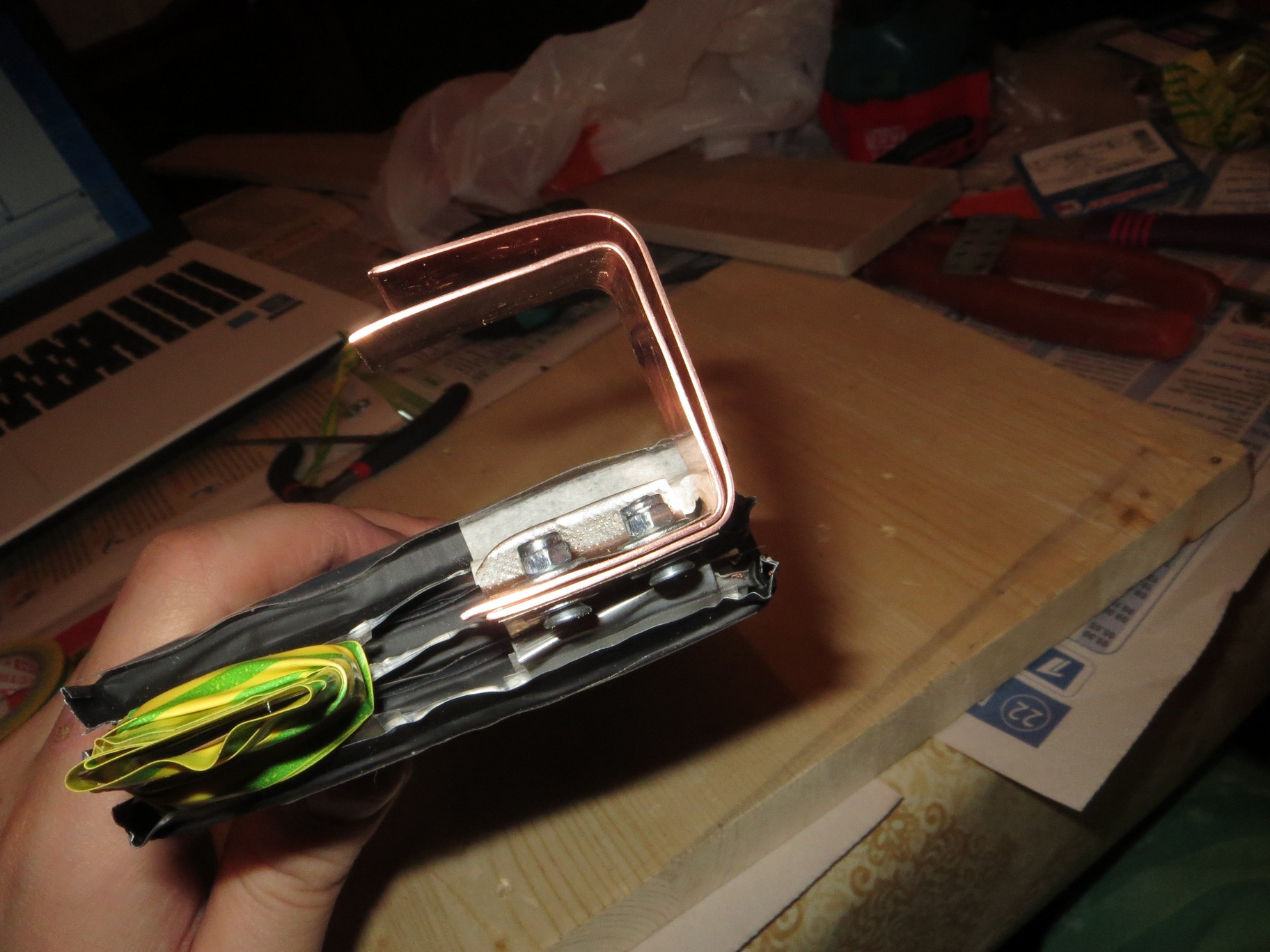 Контакты: плюсовой - алюминий нарощенный никелем, минусовой - медный.