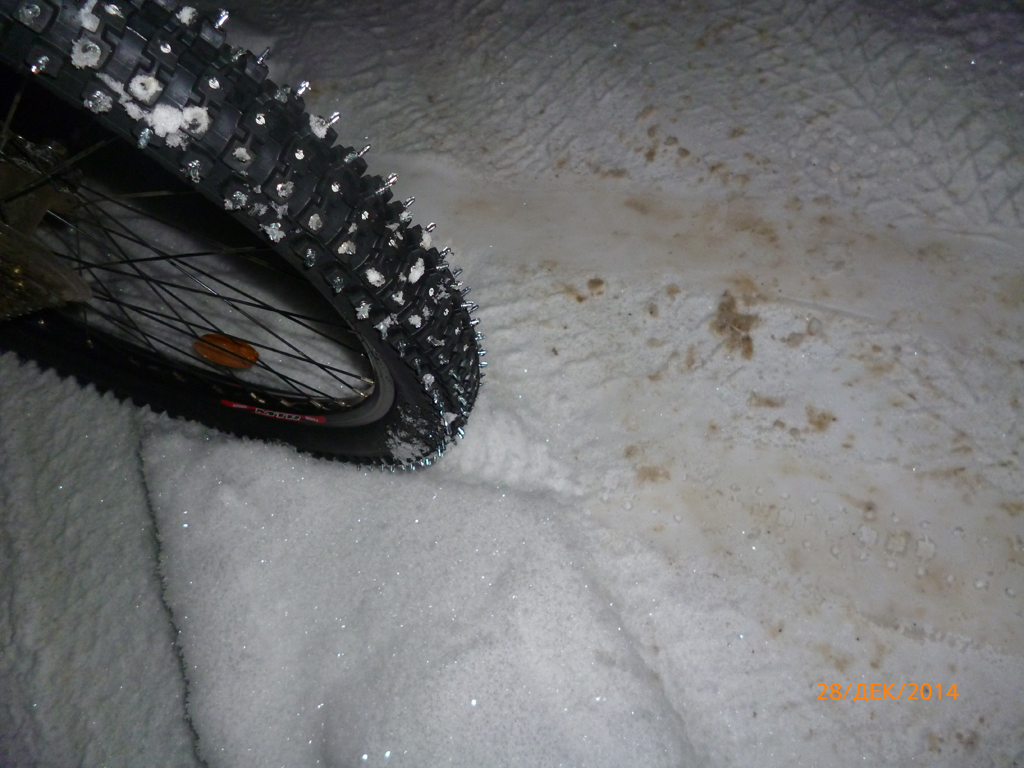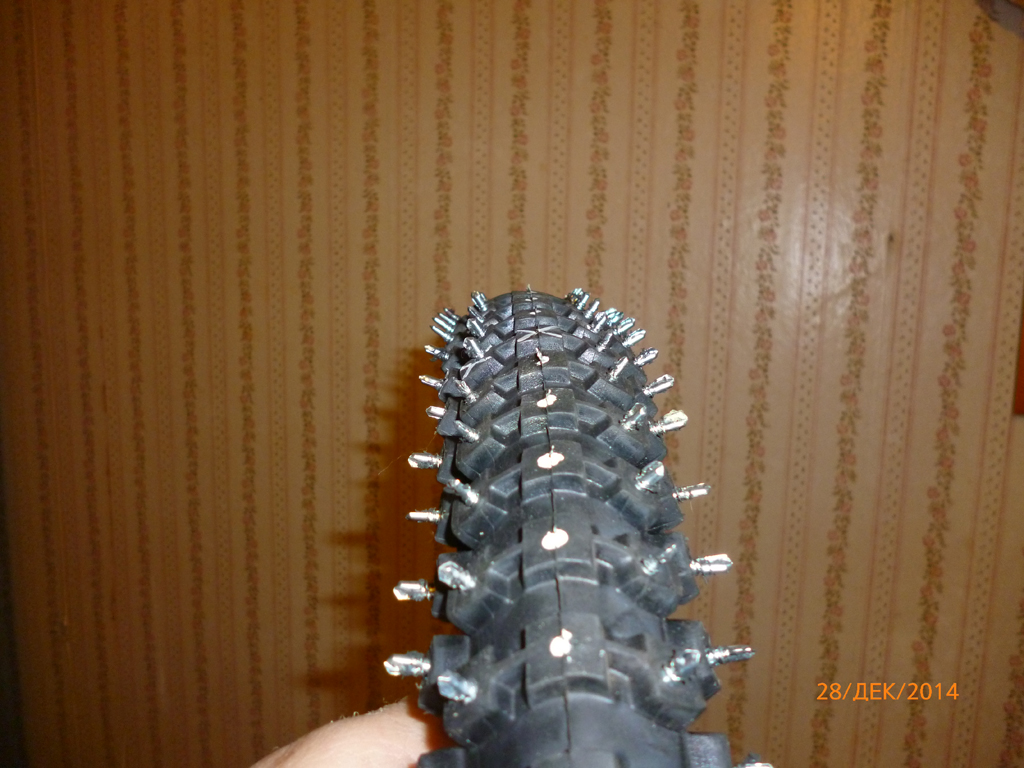 Я правда с шипами переборщил "немного", насколько помню 360 на покрышку для 26", но прёт как танк. Прокладку сделал просто из камер, после 300км пробега проколол заднее, разобрал. Следы от шляпок на камере есть, местами даже небольшие потёртости, но поверхностные - гораздо лучше чем я ожидал. А то меня стращали, что долго камеры не живут. Правда и пробег то за всю зиму будет километров 700.