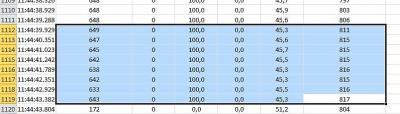 В начале участок не стоит смотреть сильно,   до первой 0 скорости. После остановки был на асфальте. С первого плавного разгона и потом прямой участок. И в конце два маленьких участка с постоянной ручкой. Можно смотреть на параметр Inputs | Throttle Command ручка газа