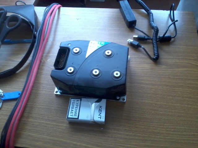 Контроллер получили. Вместе с ним USB адаптер для программирования и новую версию ПО. В ПО открыта возможность задавать двигатель с 2р=18 полюсов. Правда в этом режиме производитель контроллер не тестировал и правильную работу не гарантирует. Немного пришлось доработать проводку под новый адаптер. С программой тоже не с первой попытки всё пошло гладко. Пришлось повозиться. Но основные настройки сделали. Немного покрутили двигатель. Первая попытка самообучения продлилась намного дольше, чем в прошлый раз, но завершена не была - контроллер выдал ошибку обучения. Завтра продолжим настраивать. Не всё коту масленица.