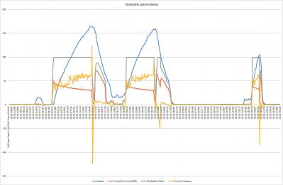 Суда по графику контроллер выставляет частоту 50 гц и глубину модуляции 1, тобиш устраивает опыт КЗ для движку.