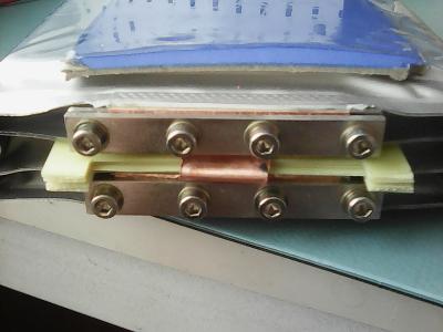 Сегодня сварили и установили выводные клеммы на АКБ. У неё нет ни одного паяного соединения. Батарея собрана и установлена в шасси. Всё стало более - менее пристойно.