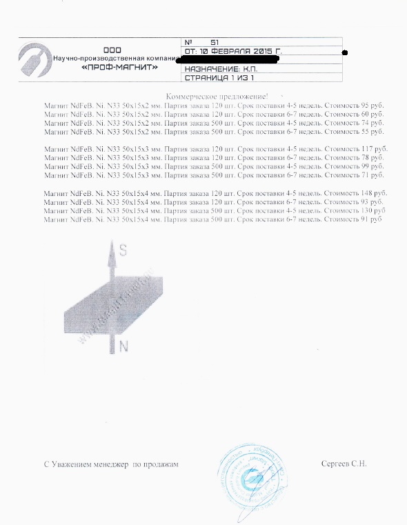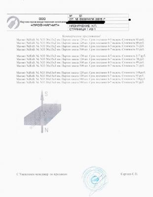 До заявления, что якобы ..больше 100 Ватт не выжать и что это никому не нужно,  Мною был сделан запрос на Питерский завод по неодимам,  вот недавно пришел ответ с ценами..