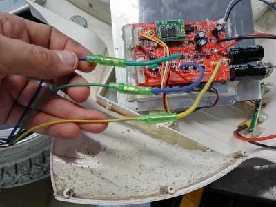 присоеденился, провода  фазовые подключил по цвету. Включил колесо, оно заморгало одним диодом, при наклоне колеса в позицию движения , оно задергалось. Подскажите как разобраться с проводами?