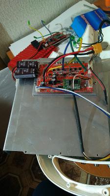 У меня ещё вот до чего не доходят мозги) положение  фазовых проводов к-мк по выложенной выше фотографии у меня уже было, пробовал так подключать.. Провода датчиков холла на фото выше,  и те которые на фото у Сергея 68, аналогичны моей родной распиновке. Но у меня так колесо не работает!!! Включается в этом положении, горят все 4 диода, потом при наклоне вперед назад отключается и горит один диод. Подсказывайте!)))