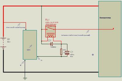 [user]crond[/user], Интересная схема. Я так понимаю, что бмс питается малым током. Не вижу проводов между банками.