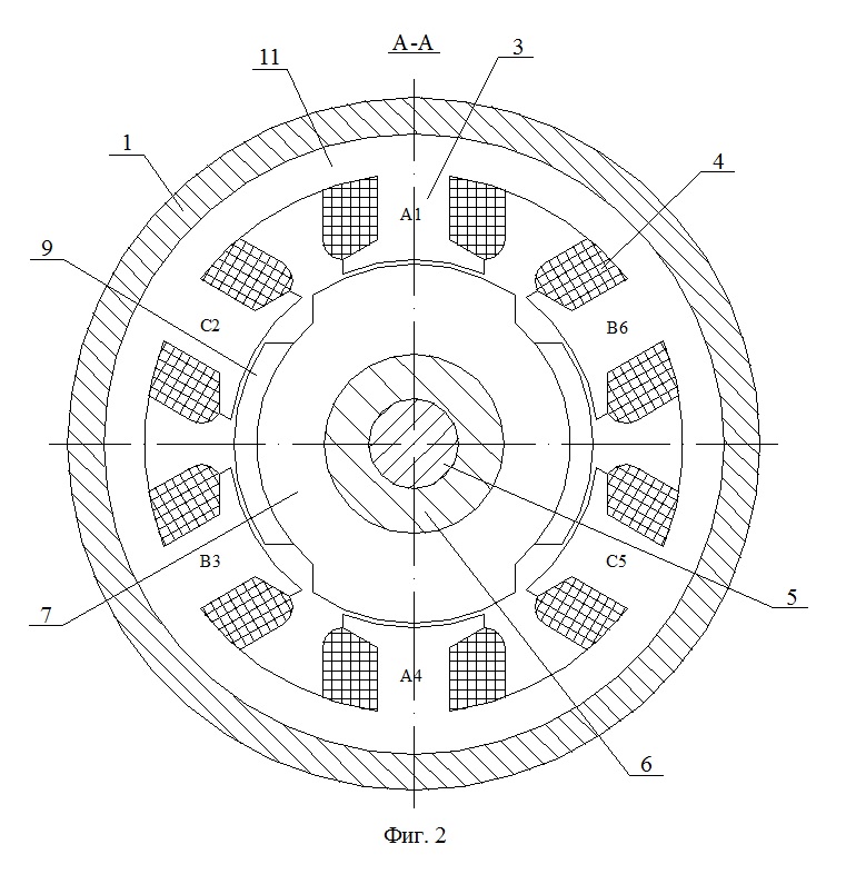 Вращающееся магнитное поле якоря организуется так же, как и у всех многофазных синхронных и асинхронных электрических машин (в данном случае, как у ВРД или БЛДЦ). Магнитное поле возбуждения организуется как у классических униполярных машин (в аксиально-радиальном направлениях).