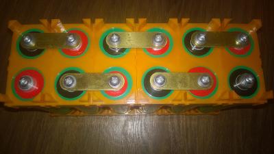 Собрал бат-ку 12s1p из зеленых цилиндров. Выбрал цилиндры с самым высоким внутренним сопротивлением, 3,8-4,4 мОм.