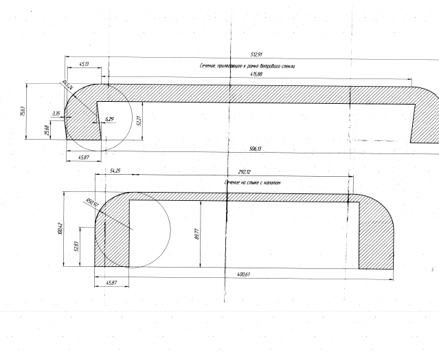 ), затем я снял с 3д модели два сечения этой детали -- сечение, прилегающее к крышке капота и сечение, прилегающее к рамке ветрового стекла: