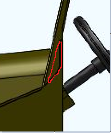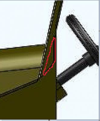 Рамка ветрового стекла закреплена к передней части перегородки моторного отсека под небольшим наклоном, для чего была немного доработана -- прикреплен клин, выделенный красным на рисунке: