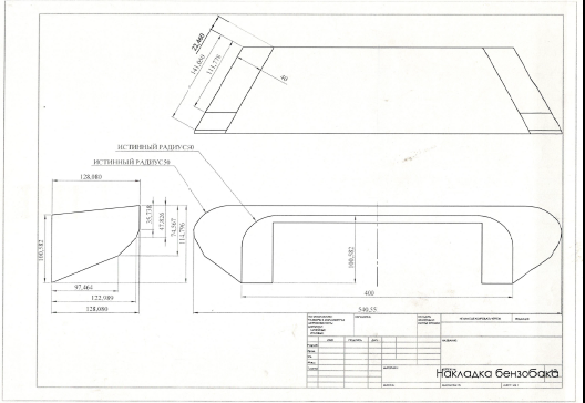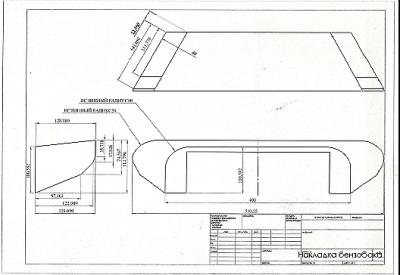 Трудно, конечно, объяснить, как я крепил рамку ветрового стекла, поскольку идеи рождались и видоизменялись уже по ходу строительства. Между рамкой ветрового стекла и капотом имеется деталь, названная мной накладка бензобака (потому что у ГАЗ-67 там собственно и был бензобак). Изначально чертеж этой детали выглядел так: