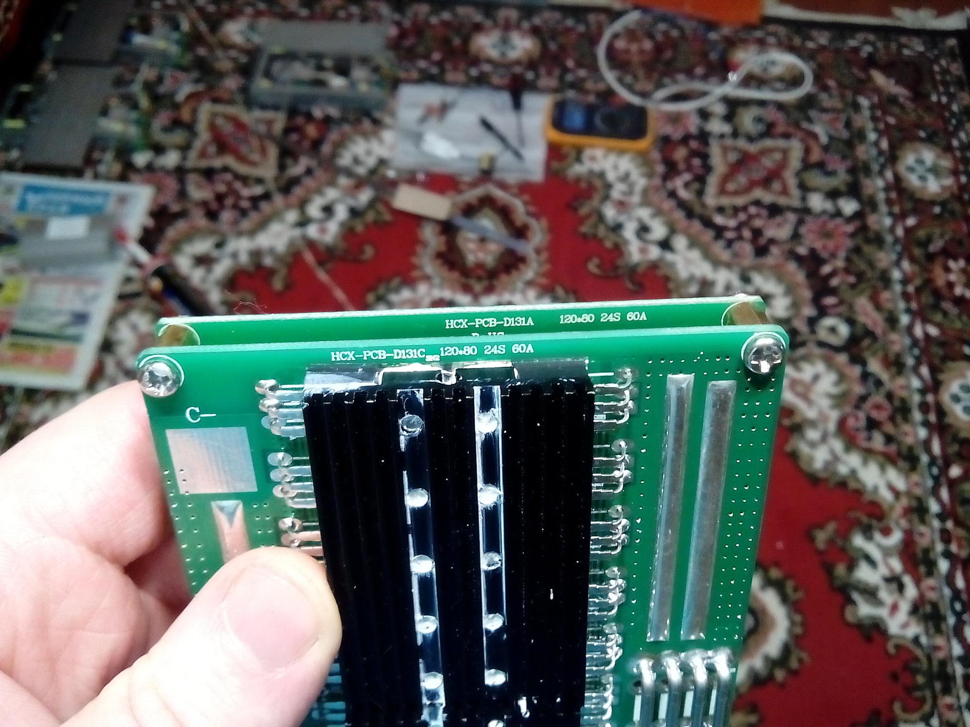 Я вот тоже озадачился выбором БМС для монстров и решил идти по сложному но дешевому пути. Купил самую дешевую БМС для 13S с балансирами на борту (попался вариант для бутылки). Решил допаять на балансировочные резисторы SMD светодиодов (нагребся с запасом вместе с резисторами). Заряжать буду подключая быструю зарядку напрямую к пакетам. Над светодиодами балансиров хочу поставить фотодиод, который будет выключать зарядное устройство как только включится хоть один балансир. БМС будет под съемной  крышечкой, для светонепроницаемости. Раьше я напаивална каждый балансировочный резистор оптрон, они не мелкие, огород получался еще тот.
