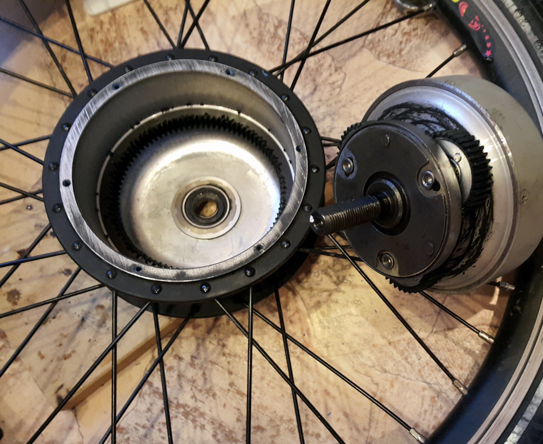 сегодня забрал колесо, поменяли сломанный фривил. а сломал когда финика не так запрограмировал и тот 3 квт в него вливал, вел аж на дыбы вставал когда на ходу полный газ дать. моторчик - бафанг 350ватт. шестерни там оказались с тонкими стальными? бортиками, а посередине пластик, разумеется они целые. потом с форсажем разобрался, занизил вроде до 1300 и так уже катался без проблем, только фривил скрежетал при разгоне )  фривил подошел от хофы, шестерни уже целиком пластик, разъем от мотора тоже как от хофы и хофовские контроллеры с ним нормально работают.