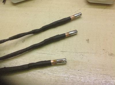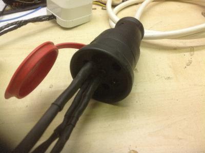 Итак, нуждающимся изготовлен переходник. Все гениальное просто. Родных коннекторов не нашел,  зато под ногами валялась медная трубка ф 6мм, и она сразу пошла в дело. Путем недолгих манипуляций изготовлены коннекторы ну и сам чпок. Проверил на розетке 3х25  N+Р3, замечаний нет.