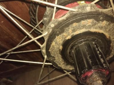На фотке этот тот самый кейде? O_O Это как же и где нужно катаца чтоб было такое состояние мотора? Не знаю что там за барабан но с виду нормальный посмотрим что будет дальше...у меня кассета шимано хт на алю пауке. Да и нагрузка в 20 дюймов колесе должна быть меньше.  Вообще то похоже это Ваша резина облезает и на нее налипла грязь. :-) из моего опыта под подобным покрытием металл портится. Скажем замотать разъем изолентой и он сгниет на улице.