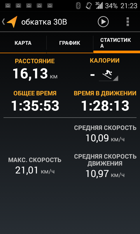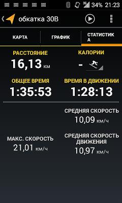 Средний темп при движении: 5:28 мин/км (8:48 мин/мил)