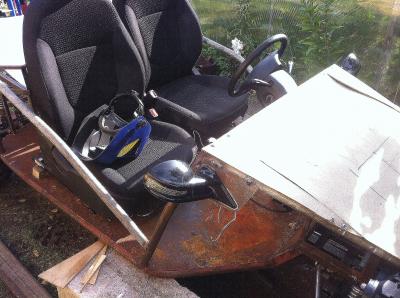 Но в глаза пыль все-таки не летела и на зубах не скрипело, поэтому делаю вывод, что это из-за того, что у нас вся передняя часть открыта: с колес, да и просто с дороги - все летело к нам в "салон". Под сидениями вообще оказался слой песка - пришлось выметать. Надеюсь, что после того, как все зашьем, пыли станет меньше.