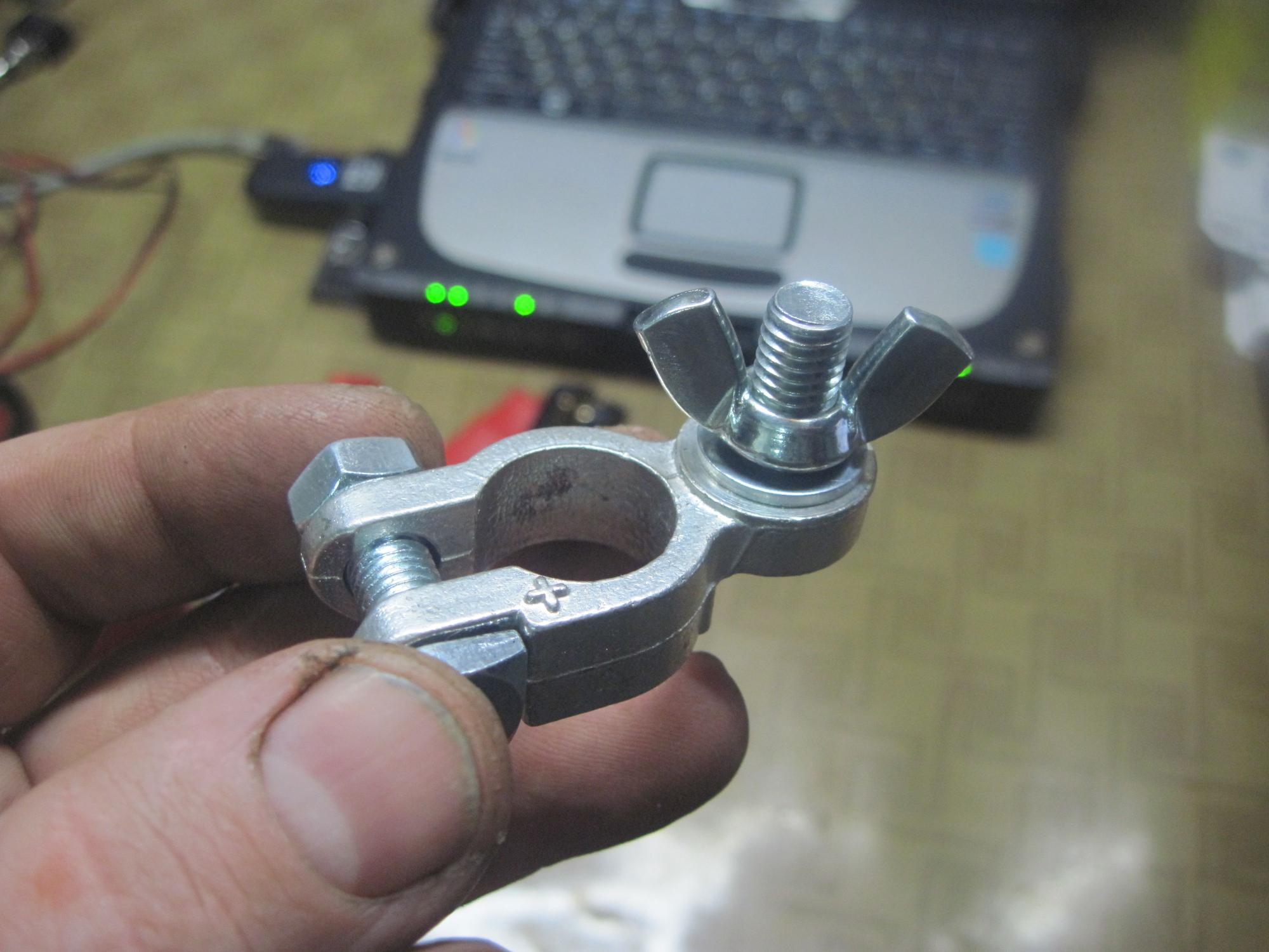 Чего-то таких не встречал..  но вот тоже вариант, если вместо винта вставить барашек, можно будет быстро и удобно освободить провода от ЗУ.