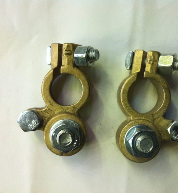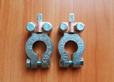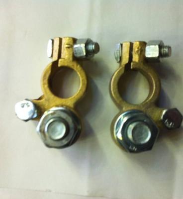 Я использую латунные клеммы, со шпилькой на М8. Провод зажимается гайкой с шайбой. Есть такие клеммы, со шпилькой под М10. Ценник правда не гуманный, за то надежно. Можно использовать клеммы под болт на выводах ЗУ, я же аккуратно зажал медный провод шайбой и гайкой, немного распушил его, чтобы была больше площадь контакта.