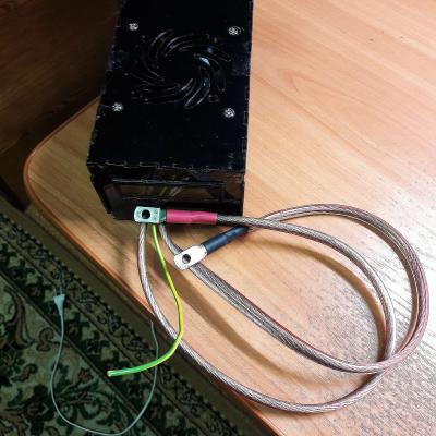 Режим 20Ач, ток до 2.4A по индикатору зус. Возьмём в среднем 2А. Переводим мультиметр в режим 200мВ и меряем напряжение от платы до клеммы АКБ.(разность потенциалов на концах провода при прохождении тока) Получаем 2мВ. Итого сопротивление куска провода 0,001Ом. Ок, смотрим паспорт на провод ПВ3 1х4мм2 и его сопротивление -4,61Oм/км. Т.к я использовал акустический 2х4мм2, то считаем сопротивление 2х4мм2 ПВ3 как 2.30 Ом/км. Итого кусок медного ПВ3 в 50 см имеет сопротивление 0,0012Ом. Исходя из этого, акустический кабель скорее все-таки медный и неплохого качества. По таким же расчетам на алюминии я бы получил 5мВ