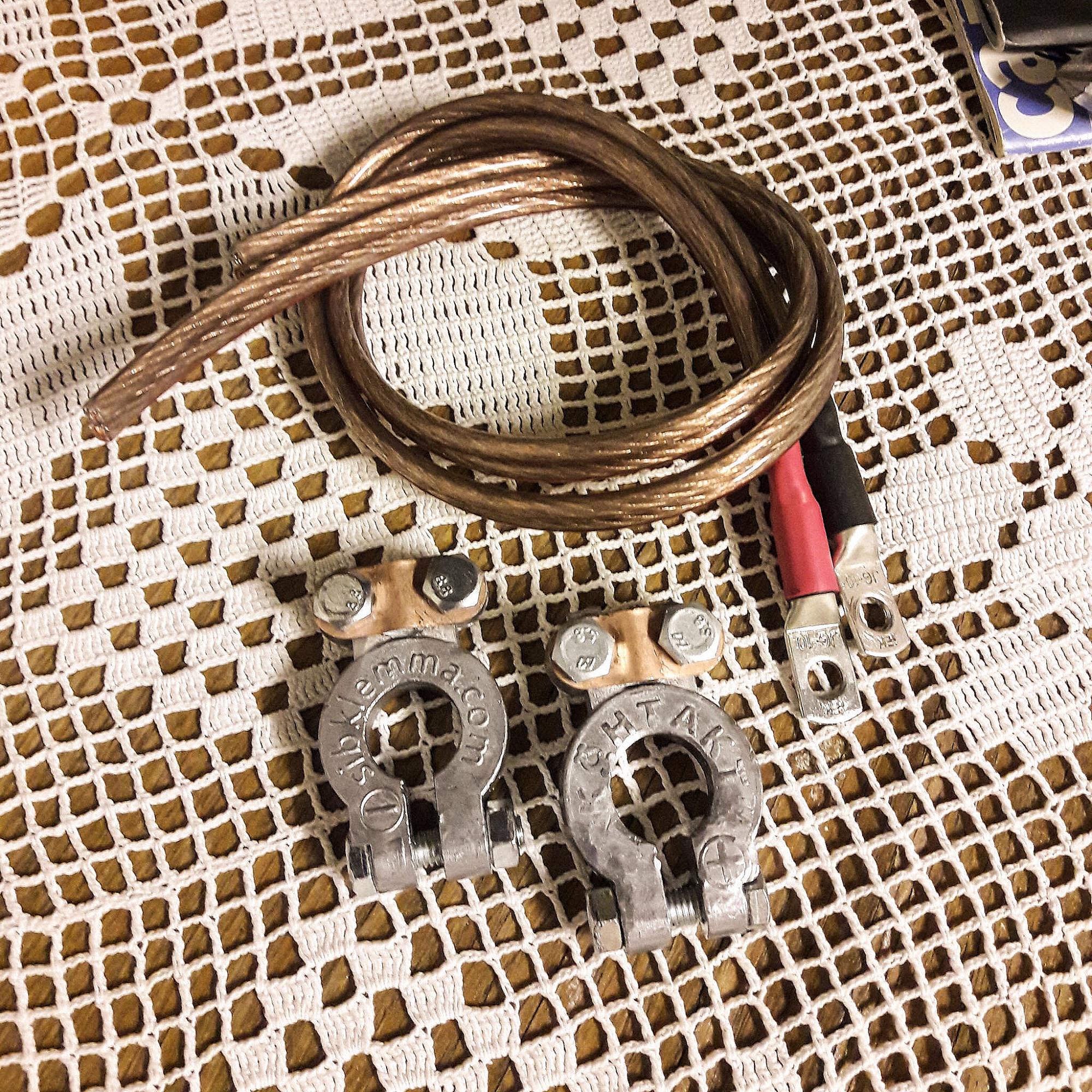 А пока он не наступил, поделюсь своей переделкой. Штатные провода ЗУСа были заменены на более мягкие и толстые. Кабель аудио 2х4мм2 (на плюс и минус),толщина жилы 0,07мм, длина где-то 49см. Итого аж 8 мм2. Наконечники медные луженые, провод впаян и под термоусадку. Провода уже трудятся на приобретённом новеньком АКБ 54Ач. :)