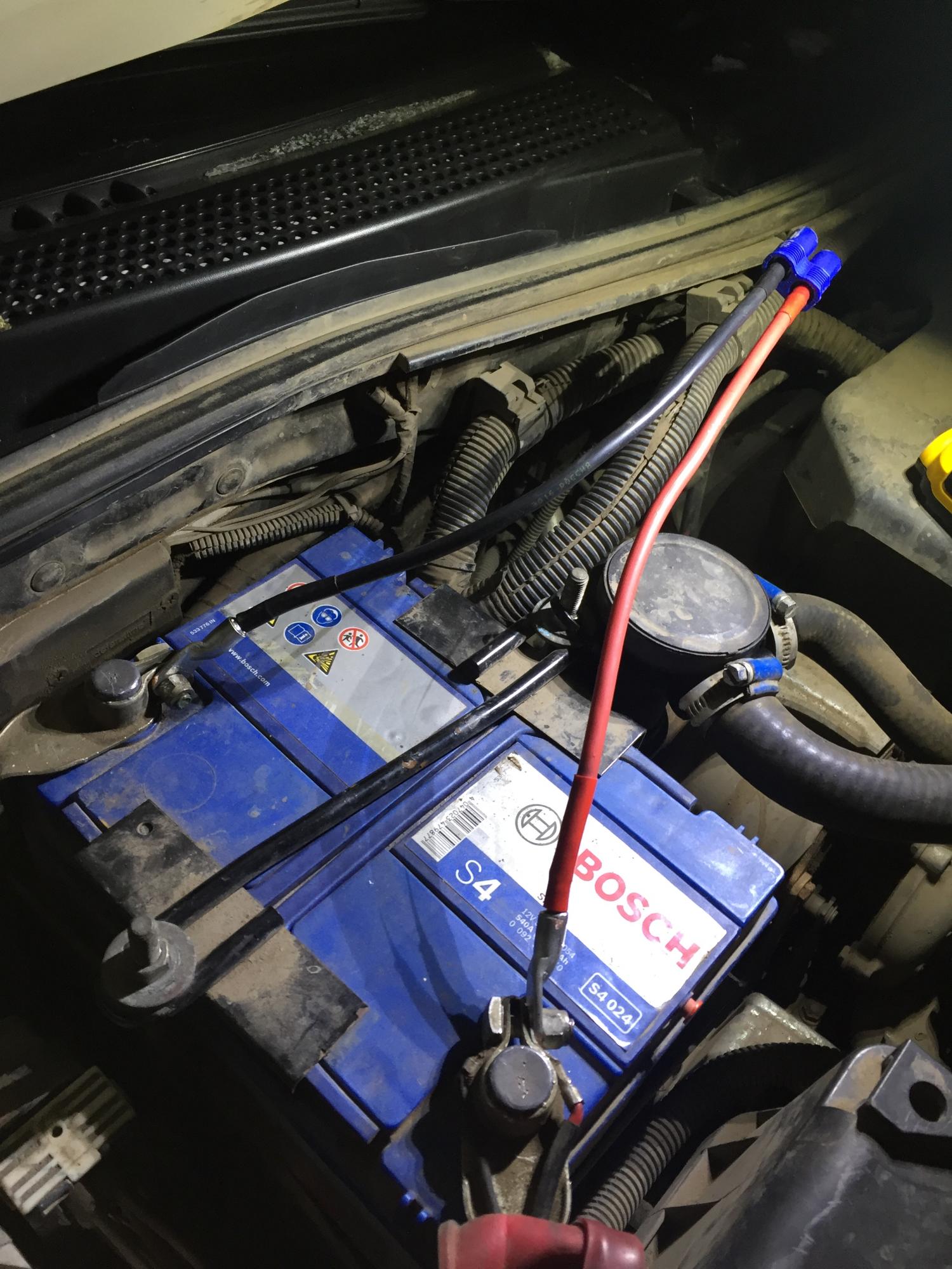 В форде чет не смог открутить странный болт, под которым сидит аккумовский минусовой хвост. Побоялся свернуть его нахрен. Чет он какойто там странный. Но подсказали, что он таки откручивается. Вот в след заезд в гараж, тоже приделаю такой хвост. И проблема коннекта ЗУСа к авто будет решена ))