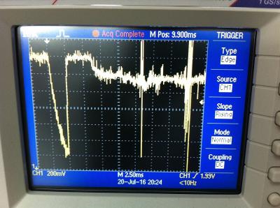 На ней отчетливо виден начальный скачок длительностью 2.5 мсек и дальнейшая работа двигателя с током в районе 12А.