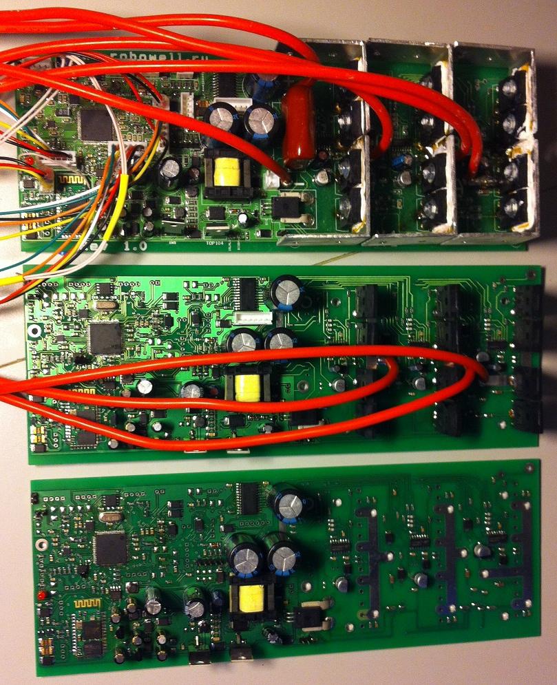 Вверху первый контроллер. Ниже два новых с доработанной схемой.