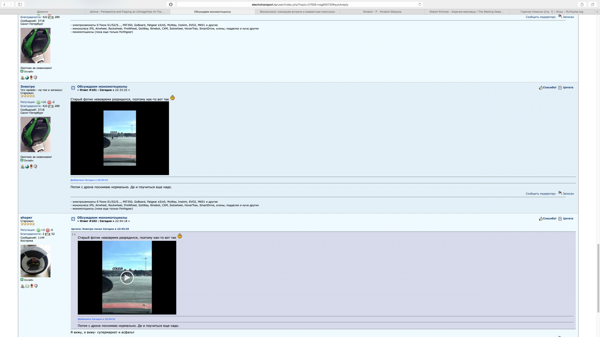Dexp r1*; Gotway MCM4* 340wh + 340wh; Kit-электровелосипед 350w; электромотор 350w на лодке из ПВХ, мечтаю собрать скутер на 3000 Вт.