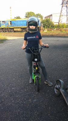 Из косяков: порвалась лямка на сумке, пришлось наскоряк скотчем примотать. Ещё вибрация в руки, колесо переднее можно приспустить попробовать. Нужно приделать ручку для переноски самоката. И вес: уже приблизился к 20 кг.
