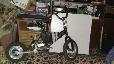 Вот такой Горбунек скотчем слепил. Первые 50 метров (не км) пройдены. Надо подключить холлы, не грех найти электротормоз. А 36в на этот проект пока достаточно.