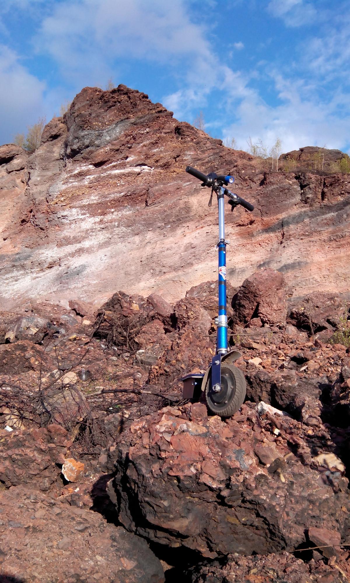 На синем самокате катанулся в другом направлении и до полной отключки батареи (лифер 48в 12ач, МК дд 8' с рекуперацией). Батарея в эксплуатации с весны 2014 г. примерно, круглый год.