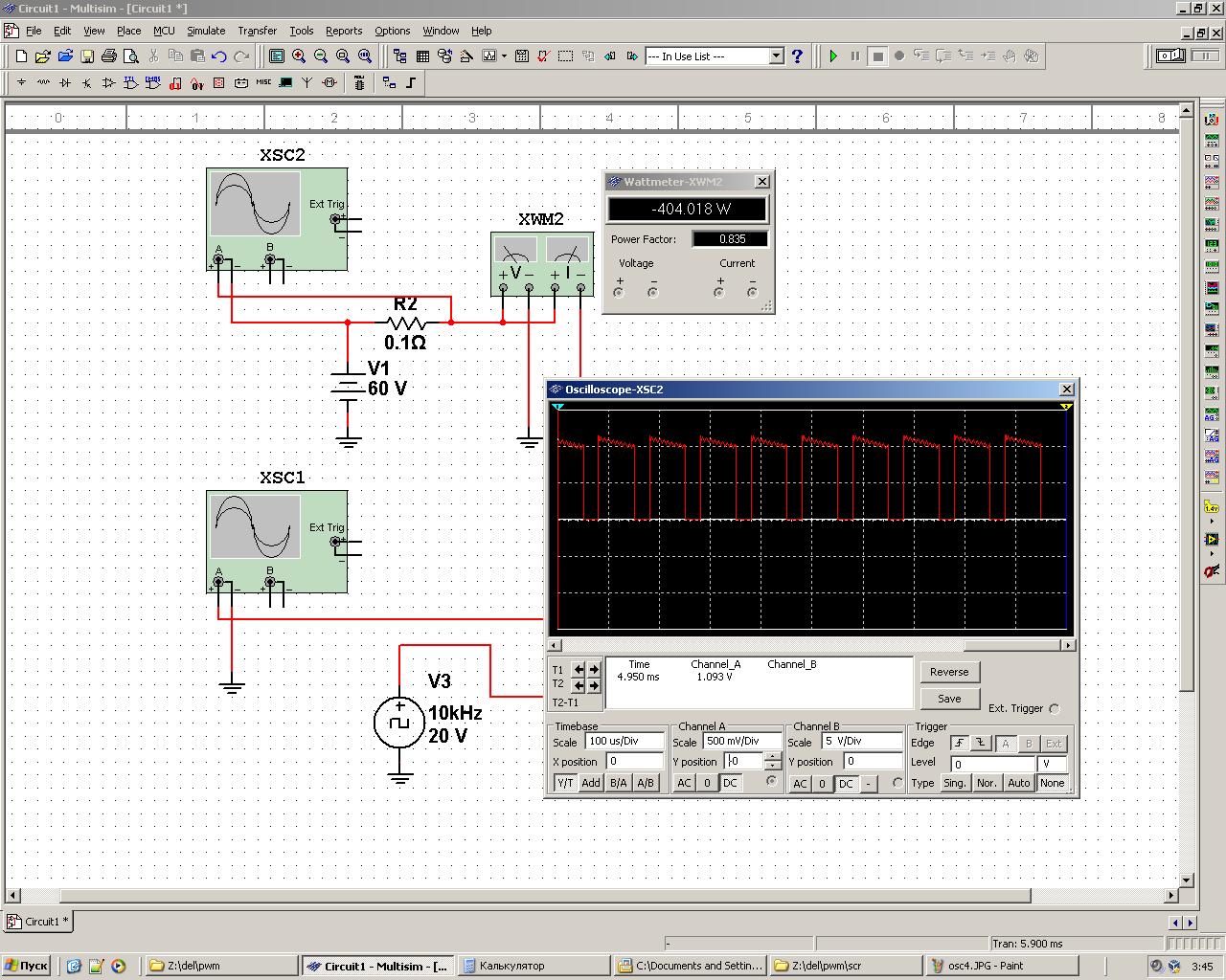 Это развернутая диаграмма в конце симуляции (около 0.1 секунды после вкл. питания):