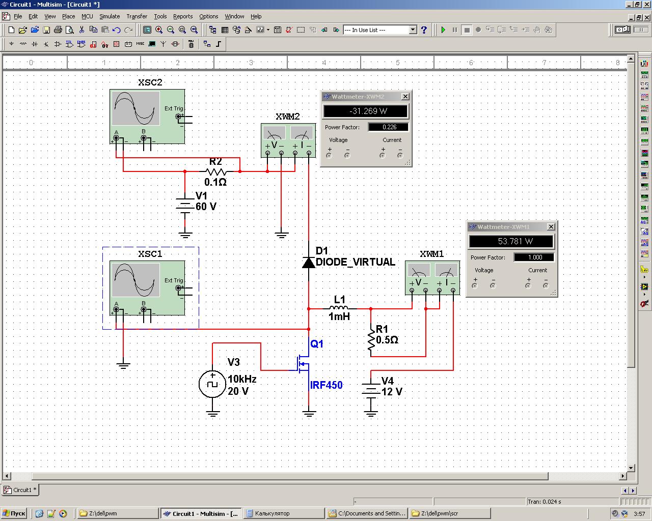 Теперь забиваем в схему нормальную индуктивность, которая присутствует в моноколесе - 1mH.