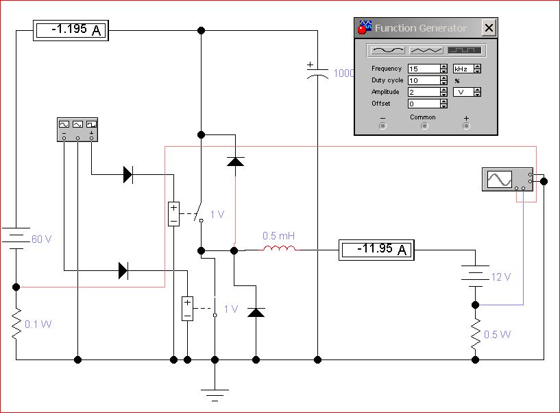 Тебе снимать оптимально 6 вольт с 12 и пихать их в 60, скважность значит 60/6=10% . Детсад.