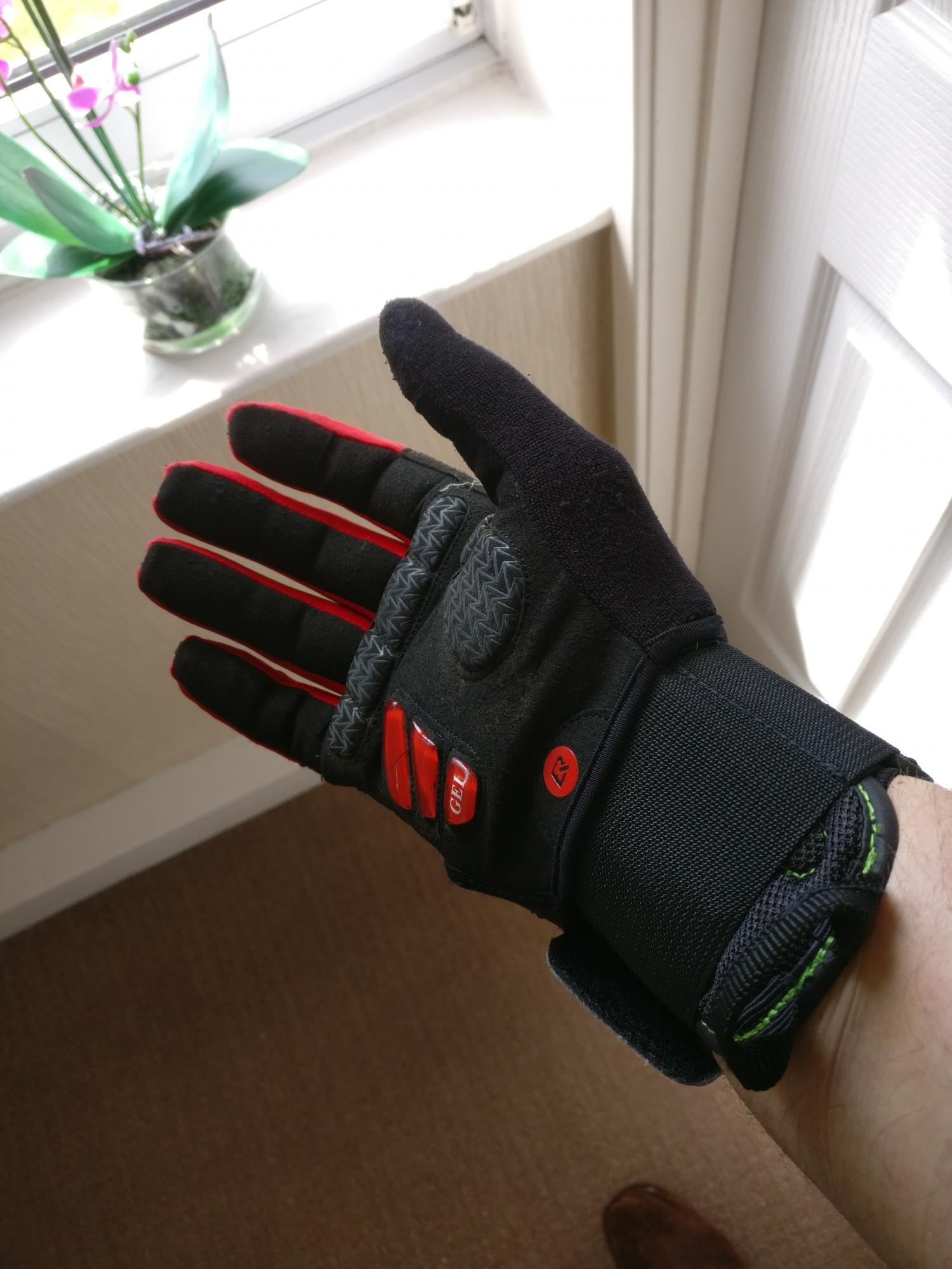 Если о перчатках, то мне прежде всего нужно защита, скажем, от кустов с колючками. Кожу рук при падении тоже нужно защищать. Очень жарко не бывает, потому что ветерок всё время обдувает.