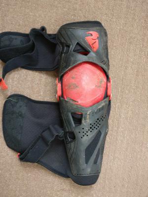 На первых порах лучше использовать защиту голени изнутри и сзади. Это будет защита от педалей моноколеса. Лично у меня такой защиты не было, и я изрядно получал педалями по ногам. Ноги были в синяках, ссадинах. В основном получала правая, которой я становлюсь сначала на педаль, не та, которую я приставляю. Я всегда ездил с коленными брейсами Thor Force XP, там была защита голени спереди, так вот эта пластмасса (часть ниже коленки) самая сохранившаяся. Правда, я по городу не езжу, только по лесу, а там бордюров не бывает.