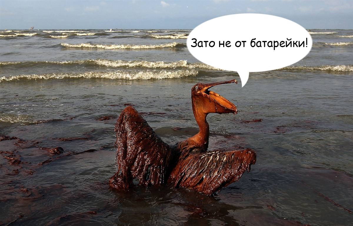 от ГЭС невозможно движение рыбы, а от ветряков птицы гибнут. так что картинка ниочем, тем более что разлив нефти происходит редко, а вот ГЭС и ветряки постоянно стоят и животным мешают.