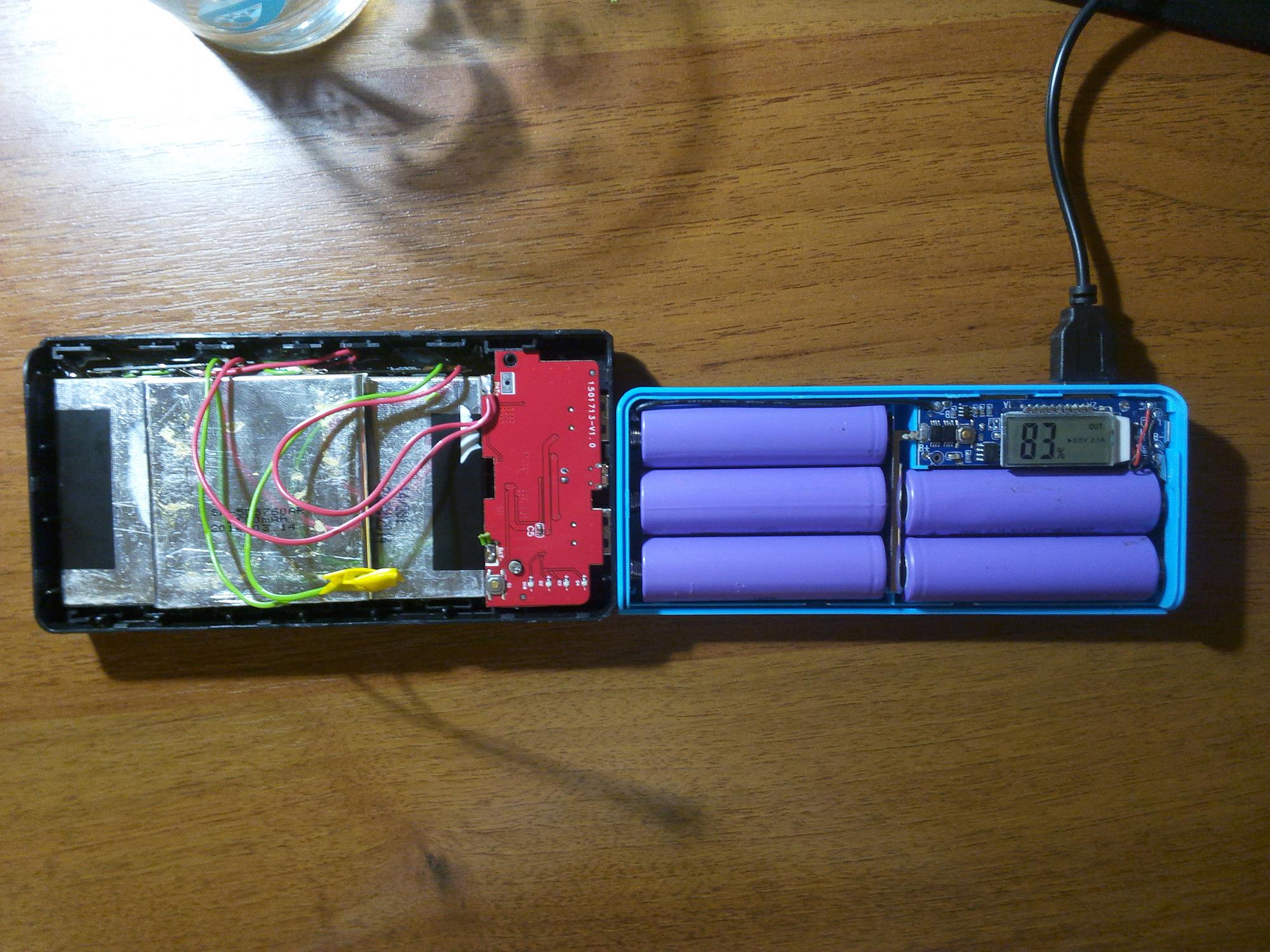 давать ссылку на ибей с неадекватной ценой на корпус, когда на али он покупается по распродаже за 2.7-3 USD поштучно (партия думаю дешевле). Для своих целей я через 3 недели после покупки Вашей "поделки" собрал себе новый на 10 000 - 17 000 mAh, который имеет раздельные каналы (на 5 и 10 Вт). Отсечка против переразряда 2,75В, также есть отсечка по превышению потребляемой мощности(при превышении макс. тока канал просто выключается до передергивания USB). Проверен мной под нагрузкой 5 Вт + 9 Вт в течение 2 часов — греется, но работает стабильно (ориентирование ночью: налобник + зарядка телефона-навигатора Самсунг ноут). Всем рекомендую, брал за 4.01 USD. Кому нужна ссылка - в ЛС, также cмогу порекомендовать отличный кабель для зарядки microUSB на 2А за 1 USD