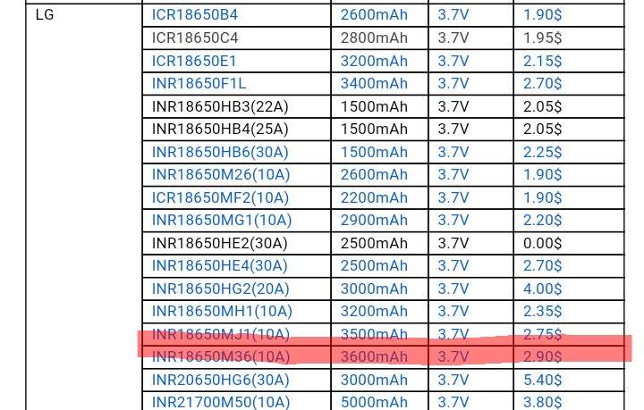 А тем временем LG представила элементы на 3,6Ач в формате 18650