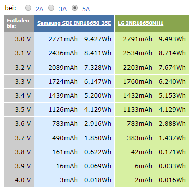 У саньё при 3А напряжение ниже где-то до 3.45В.